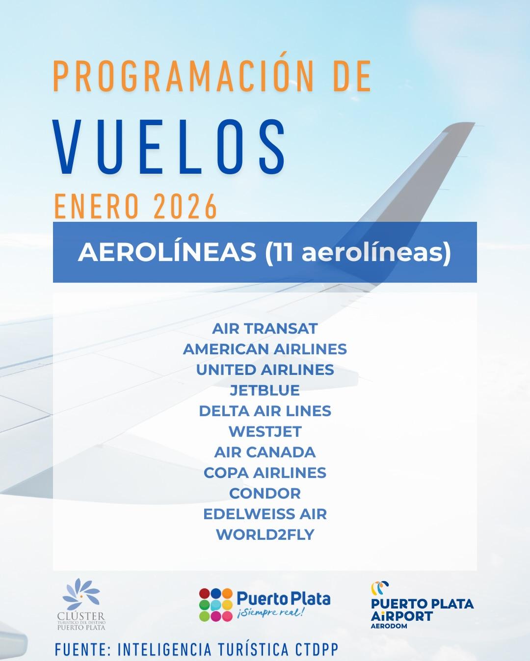 El Aeropuerto Internacional General Gregorio Luperón inició este enero 2026 con 78 rutas aéreas activas, conectando a Puerto Plata con 16 ciudades internacionales en Estados Unidos, Canadá, Europa y Centroamérica, a través de 11 aerolíneas.